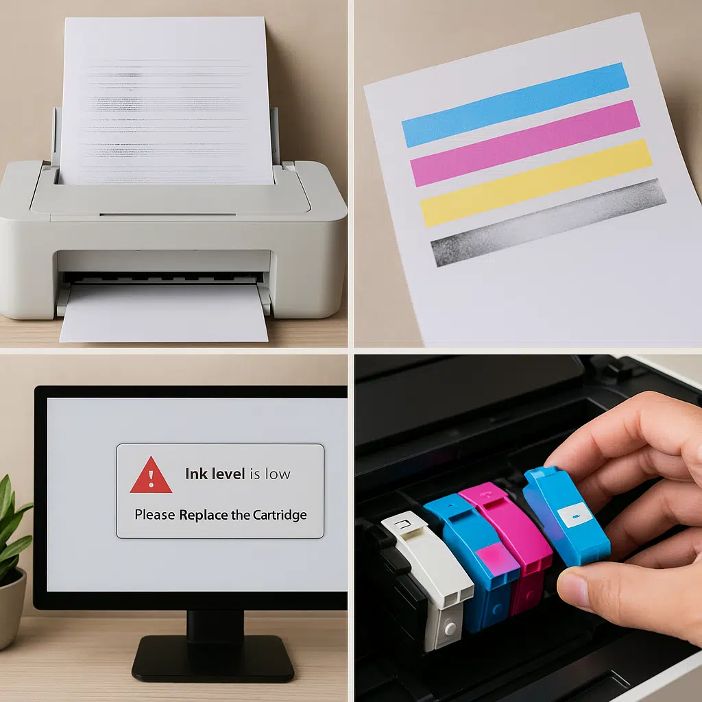 Le stampanti moderne rilevano automaticamente il livello dell’inchiostro o del toner, ma è importante saper riconoscere anche i sintomi visivi. A volte, soprattutto con cartucce compatibili, i sensori potrebbero non segnalare correttamente il livello, quindi è utile affidarsi anche alla qualità delle stampe.