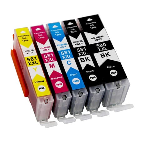 5 Cartucce vuote (2 Nere +1 per colore) ricaricabili serie Canon PGI – 580XL + CLI – 581XL con chip ARC . ( COLORE GRIGIO ESCLUSO ) più inchiostri