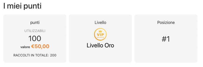 Puoi ottenere Punti Extra presentandoci un tuo amico. Vai nella sezione Il mio Account quindi nella voce di menù I miei punti e clicca sul tab a destra Ottieni Punti!